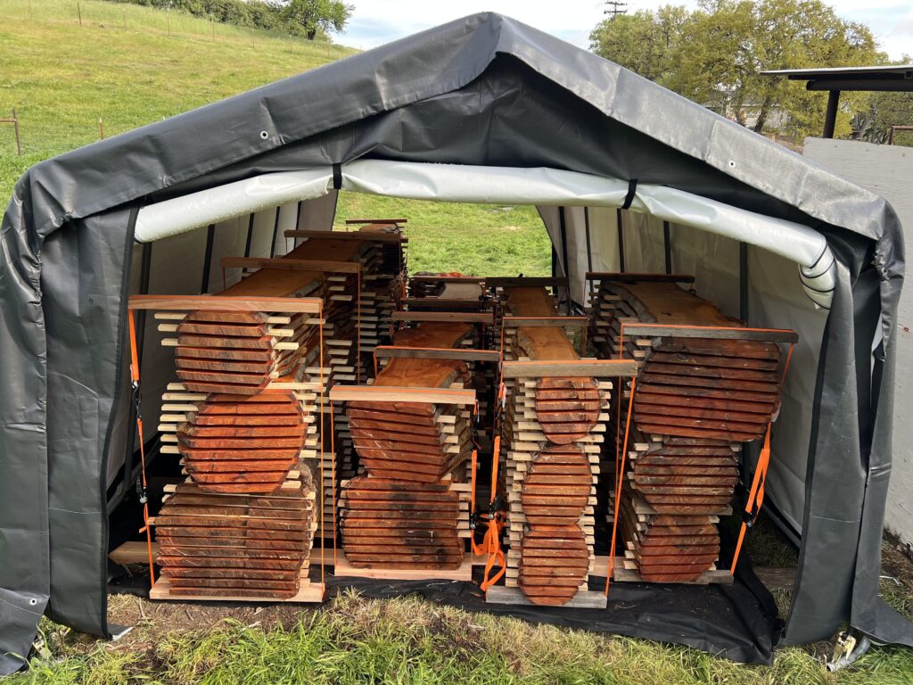 We mill urban forested lumber. Our mill is accompanied by a full production drying kiln and finishing area.